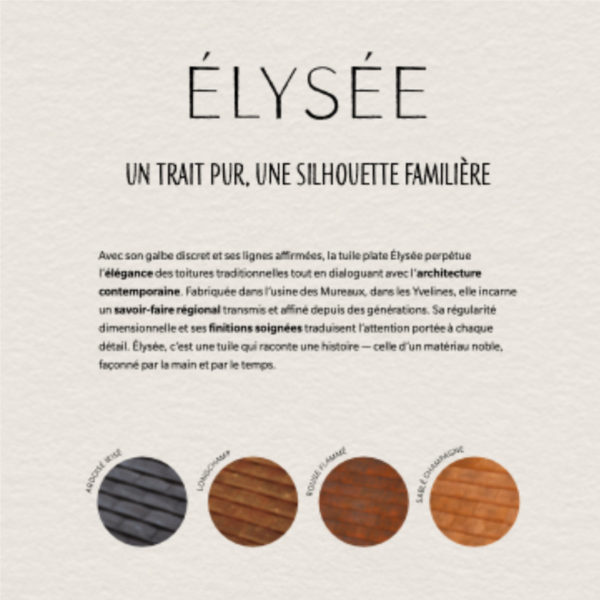 The visuals, houses, castles, and remarkable buildings, combined with refined editorial writing, bring a strong emotional dimension. This brochure is not a catalog; it is an invitation to dream, to rediscover heritage through the elegance of roofs and tiles.